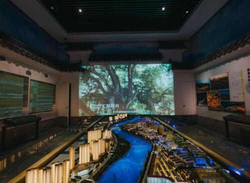 展厅内全域旅游展项由一台Vivitek(丽讯)RU70953激光工程投影机打造而成,全域旅游是强县之路。这里以图文、影像、壁挂图等形式,展示石城的精华景点、特色景区、精品线路,解析石城全域旅游的发展战略。空间设计融入地域建筑元素和客家文化特色,展厅中央设置旅游核心区模型。